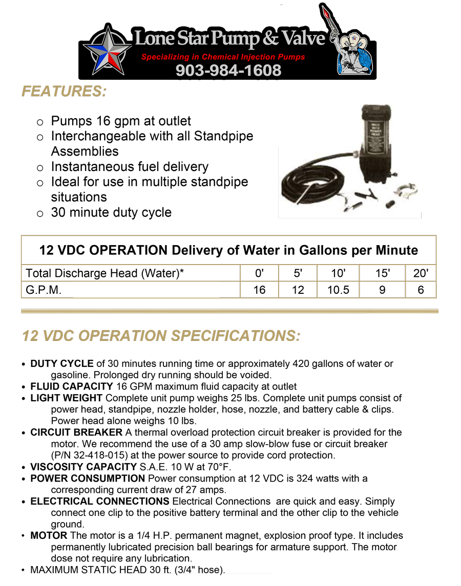The rugged and dependable pumps for the transferring of gasoline, diesel fuel, water, anti-freeze, herbicides & many other liquids. This unique impeller design allows for almost 100% recovery of liquid from container.